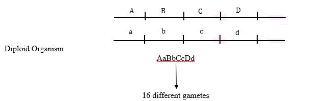 The given diploid organism is heterozygous for 4 loci, types of gametes produced = 2x2x2x2