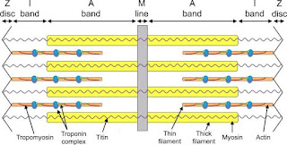 - Actin and myosin are polymerised proteins with contractility. The active sites for myosin on resting actin filament are masked by a protein-troponin. Myosin head contains ATPase and has ATP binding sites and active sites for actin. A motor neuron carries signal to the muscle fibre which generates an action potential in it. This causes the release of Ca++ from sarcoplasmic reticulum. Ca++ activates actin which binds to the myosin head to form a cross bridge. These cross bridges pull the actin filaments causing them to slide over the myosin filaments and thereby causing contraction. Ca++ are then.returned to sarcoplasmic reticulum which inactivate the actin. Cross bridges are broken and the muscles relax.