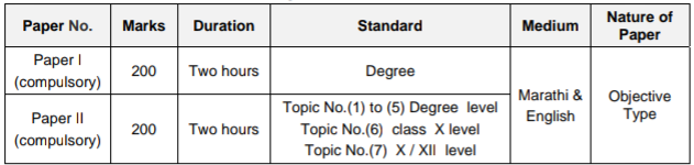 - Paper V is Compulsory Marathi of 3 hours for 100 Marks